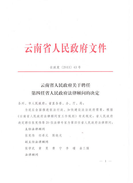 北理工法学院院长曲三强教授被续聘为云南省政府法律顾问