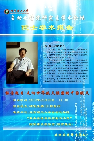 为了营造浓厚的学术氛围,了解学科前沿,促进学术交流,2012年自动化学院和“复杂系统智能控制与决策”国家重点实验室(培育基地)邀请国内外知名专家,通过高水平学术报告会和小范围学习方法讨论相结合的方式,组织了一系列学术交流活动。学院将举行自动化学院第二届研究生学术论坛闭幕式,欢迎全校师生参加。
