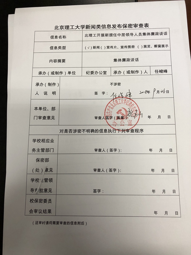 北理工开展新提任中层领导人员集体廉政谈话