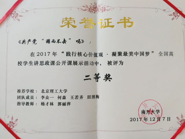 北理工在2017年“全国高校学生讲思政课公开课”展示活动中荣获二等奖